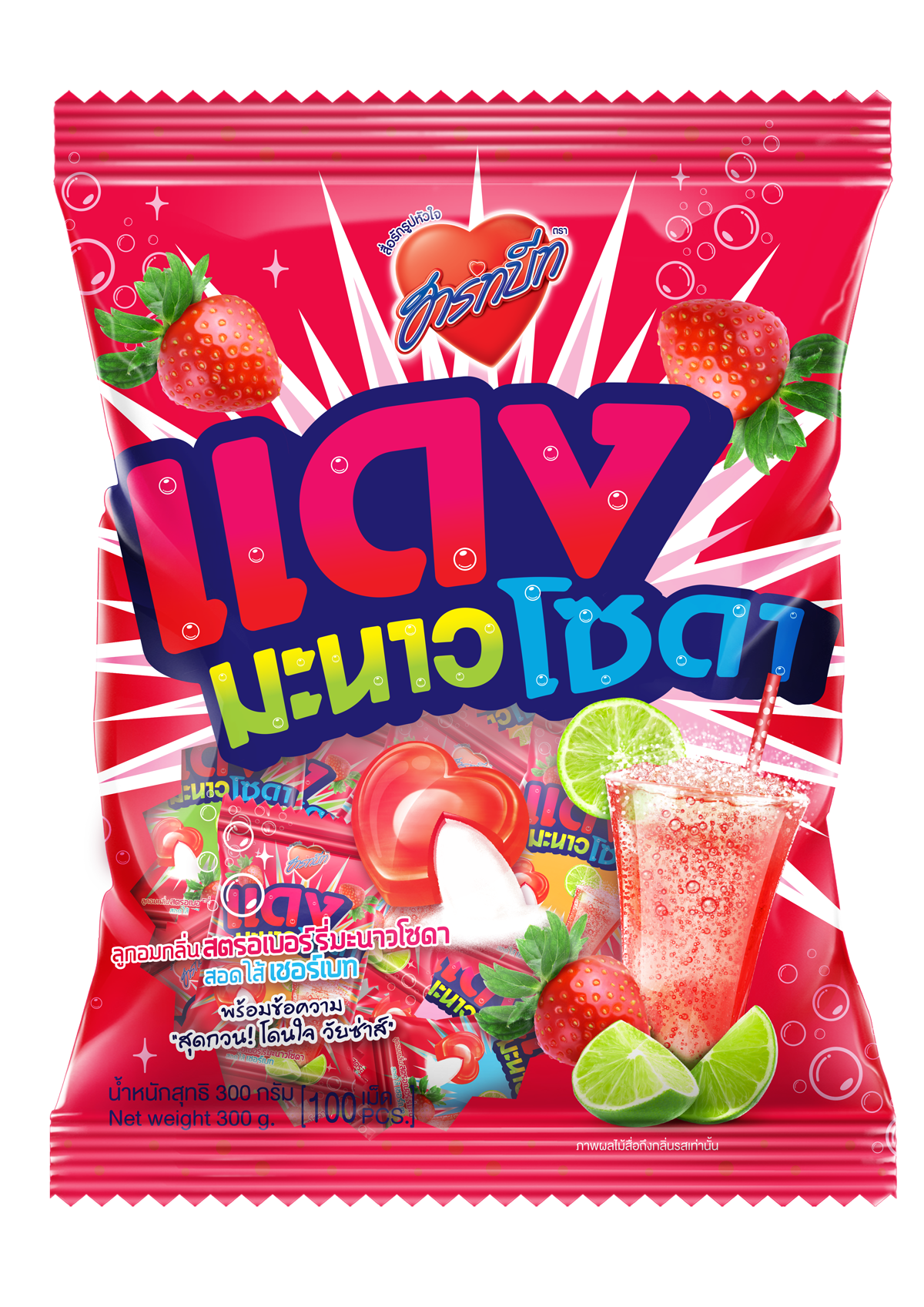 ลูกอมฮาร์ทบีท อินเทรน กลิ่นแดงมะนาวโซดา สอดไส้เชอร์เบท เปรี้ยวซ่าส์ พร้อมข้อความ สุดกวน โดนใจ